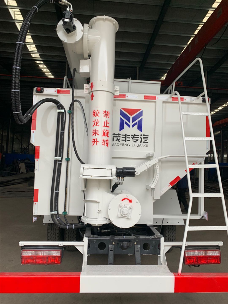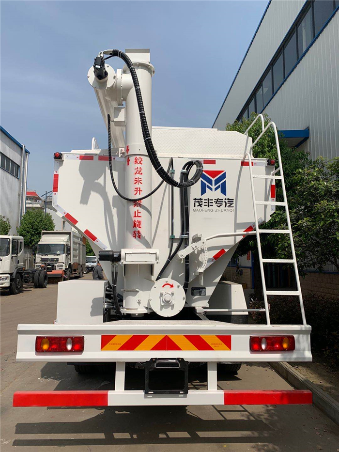 上裝罐體:罐體材質(zhì)采用4mm優(yōu)質(zhì)碳鋼板,整車3條絞龍,通過變速箱帶動取力器取力后帶動各絞龍工作,頂部絞龍用液壓控制舉升,可左右旋轉(zhuǎn)180°。罐體內(nèi)分為叁個倉,可以獨立控制各分倉卸料順序和速度。(備注:此報價為標配,國產(chǎn)電機,德力西電柜) 底盤配置:東風(fēng)天錦駕駛室,康明斯180馬力,法士特小8檔變速箱,5000mm軸距,10.00R20,18PR鋼絲胎,電動門窗,中控鎖,ABS,方向助力,空調(diào)(油耗24L\100km)