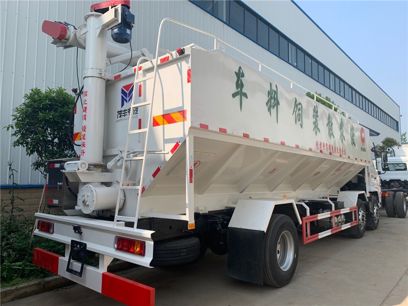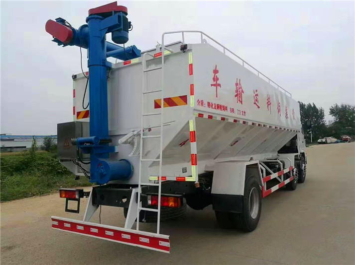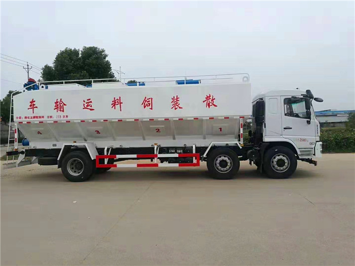上裝罐體:罐體材質采用4mm優(yōu)質碳鋼板,整車3條絞龍,由3個5.5KW電機380V外接電源帶動,頂部絞龍用液壓控制舉升,可左右旋轉180°。罐體內分為肆個倉,可以獨立控制各分倉卸料順序和速度。