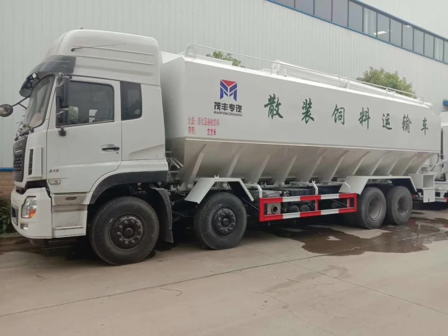 我公司專業(yè)生產(chǎn)散裝飼料廠家,有多款車型,東風(fēng)福瑞卡12方散裝飼料車、東風(fēng)天錦22方飼料車運(yùn)輸車,東風(fēng)天錦小三軸30方散裝飼料運(yùn)輸車、東風(fēng)天龍前四后八44方散裝飼料運(yùn)輸車。 散裝飼料車的優(yōu)勢散裝飼料車,散裝飼料罐在養(yǎng)殖行業(yè)越來越受歡迎了,在運(yùn)輸中可以幫助客戶解決很多問題,例如方便裝卸,節(jié)省成本,方便快捷。 一、方便快捷。上料不用人工,飼料廠直接機(jī)械上料;卸料直接用電動(dòng)(液壓)卸料,機(jī)械速度直達(dá)理想,還可分倉設(shè)計(jì),一次運(yùn)輸不同飼料,滿足多品種需求。 二、儲(chǔ)存無污染。與散裝飼料運(yùn)輸車配套的,有一個(gè)個(gè)自動(dòng)喂料系統(tǒng)的儲(chǔ)料塔,飼料直接打入料塔,場區(qū)設(shè)計(jì)可以讓散裝飼料運(yùn)輸車不用進(jìn)場就能完成卸料,這樣更減少了外來運(yùn)輸車所帶來的潛在污染問題,場區(qū)料塔完全封閉不會(huì)受到污染,儲(chǔ)料更有保障。不用再裝卸、拆分、攪拌和喂食,而可以被自動(dòng)定時(shí)定量地送進(jìn)溝槽。 三、經(jīng)濟(jì)實(shí)用。包裝不用袋,每噸可節(jié)約成本30元;不用人工上下料,每噸節(jié)約成本10元左右,對(duì)于年出欄6000頭商品豬的企業(yè)來說,每年可以節(jié)約成本約10萬多元,這是看得見摸得著實(shí)實(shí)在在的效益。 散裝飼料特點(diǎn) 1、散裝運(yùn)輸飼料比包裝成袋運(yùn)輸不但節(jié)省勞動(dòng)力,而且成本較低, 但要求畜禽場具備盛裝飼料的貯料罐。 2、散裝飼料在罐體內(nèi)密封輸送,減少損失,保證質(zhì)量,避免污染?蛇B續(xù)作業(yè),大大提高生產(chǎn)。 3、全自動(dòng)液壓系統(tǒng),操作簡單使用方便。底盤采用載重汽車底盤,其它部件,齒輪泵,液壓馬達(dá)等也系標(biāo)準(zhǔn)化,進(jìn)口液壓件國產(chǎn)化,對(duì)維修保養(yǎng)提供了方便條件。 4、罐體內(nèi)可加裝分倉,可同時(shí)運(yùn)輸多種不同類的飼料或膨化介質(zhì)。 散裝飼料車分類: 。1) 按卸料方式可分為:全自動(dòng)液壓卸料散裝飼料車和電動(dòng)卸料散裝飼料車。 。2) 按車輛形式可分為:整車式散裝飼料車和半掛式散裝飼料車。 5、部件標(biāo)準(zhǔn)化,容易維修保養(yǎng)。我廠生產(chǎn)的散裝飼料運(yùn)輸車有整車式和獨(dú)立罐式(可用于相應(yīng)載貨車運(yùn)輸)。按驅(qū)動(dòng)形式分有L電動(dòng)卸料散裝飼料車、全液壓卸料散裝飼料車和氣卸散裝飼料車?蔀榭蛻籼峁└鞣N噸位的飼料運(yùn)輸車定制化服務(wù)